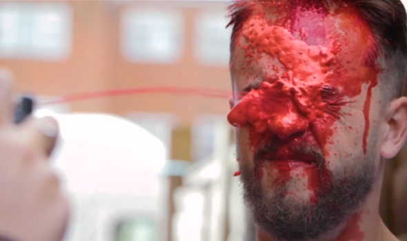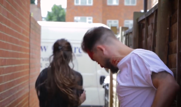 The attacker’s vision has temporarily been obscured. They are startled and confused. Their skin and clothes are stained with the red criminal Identifier.