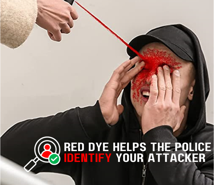 Red marking dye can stain your attacker’s skin and clothes for several days and helps the Police identify them.